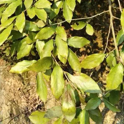 具纵条纹,绿色,干时棕褐色,或疏或密被黄白色短柔毛,基部有密集芽鳞痕,一年生枝条粗壮,无毛,皮层不规则纵裂。顶芽卵形,长约5毫米。叶互生,通常披针形、卵形或椭圆形,长(3)4-9(12.5),宽(1)1.5-3(4.5)厘米,先端渐尖、急尖、骤尖或有时近尾尖,基部宽楔形或近圆形;薄革质至厚革质;上面绿色,无毛,下面灰绿或浅黄色,被黄褐色柔毛,后渐脱落成疏柔毛或无毛,边缘内卷;羽状脉,侧脉每边5-7条,弧曲,与中脉上面凹陷,下面突起,被黄褐色微柔毛或近无毛;叶柄长5-8毫米,被黄褐色微柔毛或近无毛。伞形花序具5-8朵花,单生或二个同生于叶腋,总梗极短;总苞片4,早落。雄花黄色,直径达4毫米,花梗长2-2.5毫米,略被金黄色微柔毛;花被片6,卵形,近等大,长约3毫米,宽1.5毫米,先端圆形,外面略被金黄色微柔毛或近无毛;雄蕊9,长2.5-3毫米,花丝略被微柔毛或无毛,与花药等长,第三轮基部有2具角突宽肾形腺体;退化雌蕊的子房卵形,长约1毫米,无毛,花柱、柱头不分,成一短凸尖。雌花黄色或黄白色,花梗长2-2.5毫米;花被片6,卵形,长2毫米,外面被微柔毛;退化雄蕊9,条形,长1.5毫米,第三轮有2个腺体;子房椭圆形,长1.5毫米,无毛,花柱长2毫米,柱头盾形,具乳突。果卵形,长约1厘米,宽7-8毫米,也有时略小而近球形,无毛,成熟时红色;果梗长4-7毫米,被黄褐色微柔毛。花期3-4月,果期9-10月。
