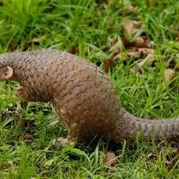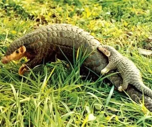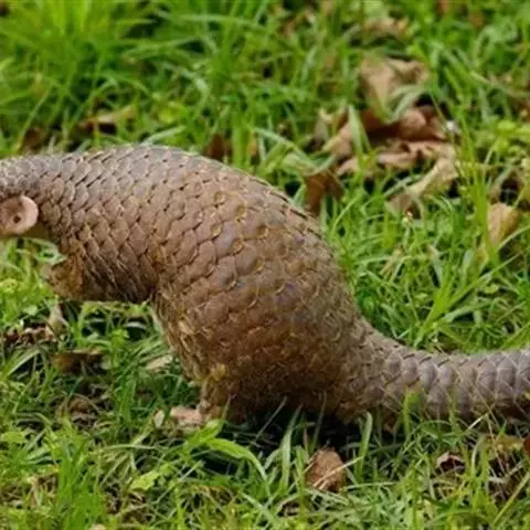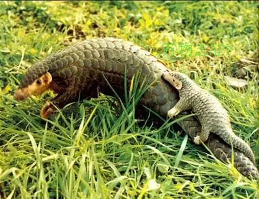 穿山甲(学名:Manis pentadactyla):头体长42-92厘米,尾长28-35厘米,体重2-7千克;鳞片与体轴平行,共15-18列。尾上另有纵向鳞片9-10 片。鳞片棕褐色,老年兽的鳞片边缘橙褐或灰褐色,幼兽尚未角化的鳞片呈黄色。吻细长。脑颅大,呈圆锥形。