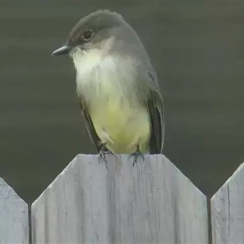 东菲比霸鹟雀腭型头骨。颈椎15枚。喙短而宽阔,根部有毛。离趾型足,趾三前一后,前3趾基部并连,…