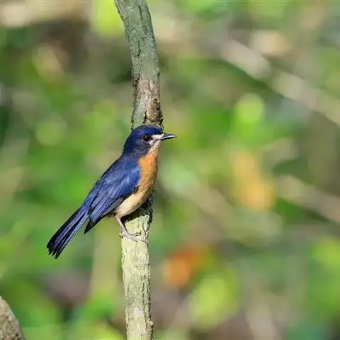 小仙鹟:体长11-13厘米,是一种深色鹟。雄鸟深蓝,脸侧及喉黑,臀白,前额、颈侧及腰为闪辉蓝色。…