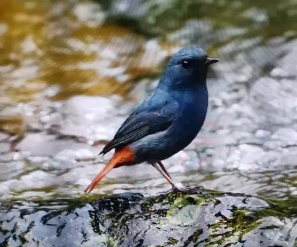 红尾水鸲(学名:Rhyacornis fuliginosus)是鸫科水鸲属的小型鸟类,雄鸟通体大都暗灰蓝色;翅黑褐色;尾羽和尾的上、下覆羽均栗红色。雌鸟上体灰褐色;翅褐色,具两道白色点状斑;尾羽白色、端部及羽缘褐色;尾的上、下覆羽纯白;下体灰色,杂以不规则的白色细斑。