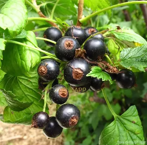 黑茶藨子(学名:Ribes nigrum L.),别称:黑加仑、茶藨子等。落叶直立灌木,高1-2米;小枝暗灰色或灰褐色,幼枝褐色或棕褐色,具疏密不等的短柔毛;芽长卵圆形或椭圆形,具数枚黄褐色或棕色鳞片。叶近圆形,基部心脏形,上面暗绿色,下面被短柔毛和黄色腺体;叶柄具短柔毛,偶而疏生腺体。花两性;总状花序下垂或呈弧形;花序轴和花梗具短柔毛;苞片披针形或卵圆形;花萼浅黄绿色或浅粉红色;萼筒近钟形;萼片舌形;花瓣卵圆形或卵状椭圆形。果实近圆形,熟时黑色,疏生腺体。花期5-6月,果期7-8月。