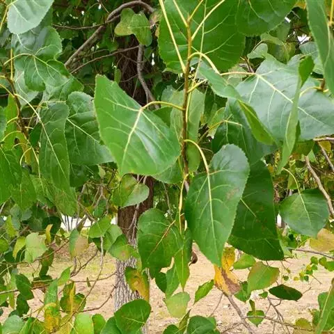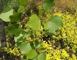黑杨,为乔木,高30米;树冠阔椭圆形。树皮暗灰色,老时沟裂。小枝圆形,淡黄色,无毛。芽长卵形,富粘质,…