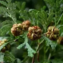 球桧:为丛生圆球形或扁球形灌木,叶多为鳞叶,小枝密生。