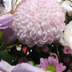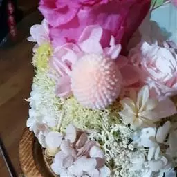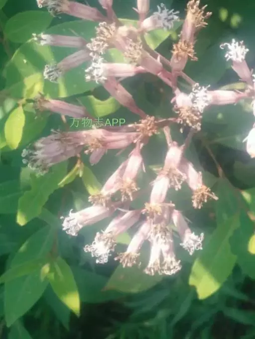 头状花序多数,在茎端密集成复伞房状,干时宽6-7毫米;花序梗长5-16毫米,具数枚线形小苞片;总苞筒状,长9-12毫米,宽5-7毫米,基部有3-4小苞片;总苞片1层,5,长圆形,顶端钝,边缘膜质,外面无毛。小花8-10,花冠淡粉白色,长10毫米,管部窄,长3.5-4毫米,檐部窄钟状,5裂;花药变紫色,基部短箭形;花柱分枝伸长,扁,顶端钝,被笔状微毛。瘦果圆柱形,长5-6毫米,无毛,具肋;冠毛污白色或变红色,糙毛状,长8-10毫米。花期6-7月,果期8-10月。