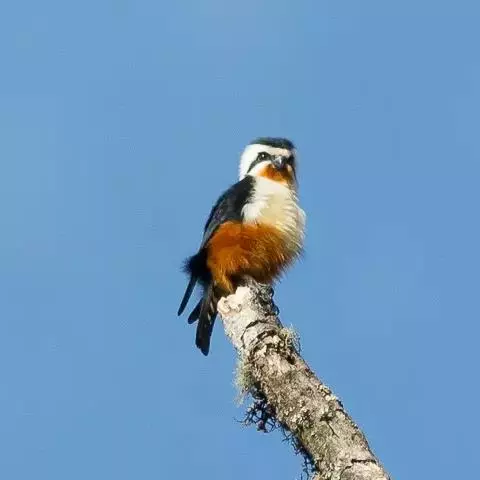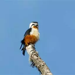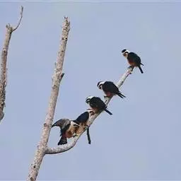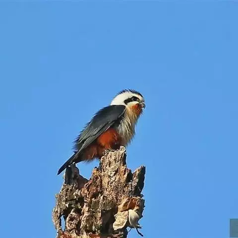 凤头卡拉鹰 凤头卡拉鹰体长49~59厘米,翼展1米左右,体重835~955克,雌性比雄性略大,背部及双翅为黑色,头顶、颈部、尾部为白色。虽然名字叫鹰,但是实际上凤头卡拉鹰属于隼科,它和游隼、燕隼的亲缘关系更近一些。凤头卡拉鹰的英文名称叫(Crested Caracara),源自它头部特殊的冠羽和这种鸟粗糙刺耳的叫声,意思是“戴头饰的“咔啦”鸟” 凤头巨隼 。