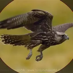 游隼yóu sǔn:是隼科、隼属的中型猛禽,共有18个亚种。体长41-50厘米。翅长而尖,眼周黄色,…
