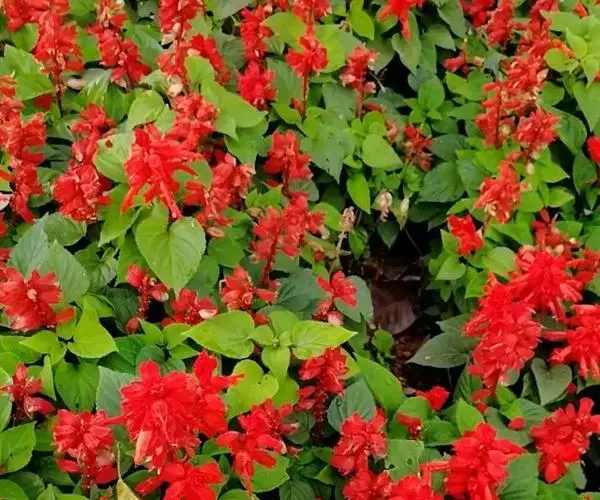 一串红常用红花品种,秋高气爽之际,花朵繁密,色彩艳丽。常用作花丛花坛的主体材料。也可植于带状花坛或自然式纯植于林缘.常与浅黄色美人蕉、矮万寿菊、浅蓝或水粉色水牡丹、翠菊、矮霍香蓟等配合布置。一串红矮生品种更宜用于花坛,白花品种除与红花品种配合观赏效果较好外。一般白花、紫花品种的观赏价值不及红花品种。