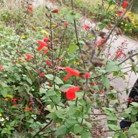 一串红,又称爆仗红、象牙红,为唇形科鼠尾草属植物。