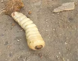 斗米虫为锈色粒肩天牛的幼虫,锈色粒肩天牛主要危害槐树Sophora japonica,…