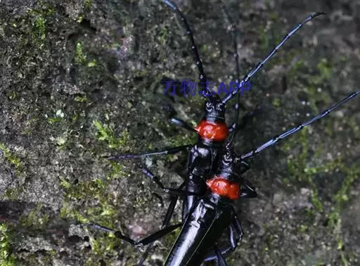 桃红颈天牛是天牛科、颈天牛属昆虫。体黑色发亮,前胸背面大部分为光亮的棕红色或完全黑色。头黑色,…