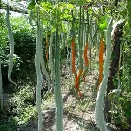 蛇瓜是葫芦科栝楼属的一年生攀援藤本植物。别名蛇豆。茎被柔毛及疏长柔毛状硬毛;叶圆形或肾状圆形,…