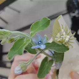 花密集,组成顶生和腋生的三歧聚伞花序,每分枝基部有苞片2枚;苞片三角形,长2-4毫米;小苞片三角形,生于花梗的基部和中部;花梗纤细,长3-8毫米;花萼裂片卵状披针形,长3-4毫米;花冠黄色,漏斗状,长12-19毫米,内面有淡红色斑点,花冠管长7-10毫米,花冠裂片卵形,长5-9毫米;雄蕊着生于花冠管中部,花丝细长,长3.5-4毫米,花药卵状长圆形,长1.5-2毫米,伸出花冠管喉部之外;子房卵状长圆形,长2-2.5毫米,花柱长8-12毫米,柱头上部2裂,裂片顶端再2裂。
