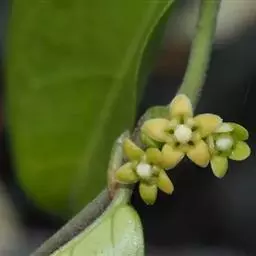 鳝藤,攀援灌木,有乳汁;枝土灰色。叶长圆形或披针形,顶端渐尖,基部楔形。聚伞花序总状式,顶生;小苞…