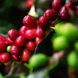 大粒咖啡(学名:Coffea liberica Bull ex Hiern)茜草科植物,小乔木或大灌木,高6-15米;枝开展。叶薄革质,椭圆形、倒卵状椭圆形或披针形,顶端阔急尖,基部阔楔尖,全缘,两面无毛,下面脉腋有小窝孔,窝孔内具短丛毛;侧脉每边8-10条;叶柄粗壮;托叶基部合生,阔三角形,顶端钝,罕有凸尖。聚伞花序短小,2至数个簇生于叶腋或在老枝的叶痕上,有极短的总花梗;苞片合生,二型,通常2枚阔卵形,顶端截平。花未见。浆果大,阔椭圆形,成熟时鲜红色,顶端冠以宽4-7毫米、凸起的花盘;种子长圆形,直径约10毫米,平滑。花期1-5月。