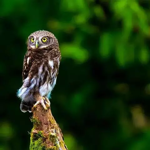 猛鸮)是鸱鸮科,猛鸮属的一种动物。体长35~40厘米,体重247~375克。具鹰样的尾,…