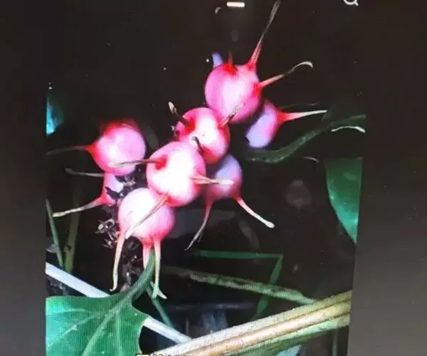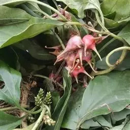 雌花1-3,生花序轴基部,连柄长近4毫米,萼片覆瓦状排列,卵状披针形或长圆状披针形,长2-3毫米,无毛,花柱受粉后伸出花外甚长,上端旋卷。果熟时黄色或红色,球形,和宿存花柱各长1厘米。花期2-5月,果期9-10月。