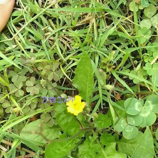 一年或二年细弱草本,高5-30cm。基生叶丛生,有柄;叶片长4-18cm,宽1-3cm,先端圆钝或短尖,顶端裂片较大,卵圆形,边缘羽状分裂,两侧裂片3-4对,短椭圆形;茎生叶1-2,有短柄或近无柄。头状花序成稀疏的伞房状圆锥花丛,有细梗,果时常下垂;总苞圆柱状钟形,外层总苞片小,卵状披针形,长约1mm,内层总苞片5-6,长椭圆状披针形,长约4.5mm;花托平坦,无毛;全部为舌状花,黄色。瘦果椭圆状披针形,扁平,长4-5mm,等于或长于总苞片,成熟后黄棕色,无毛,背腹面各有5-7肋,先端两侧各有1钩刺,无冠毛。花果期4-5月。