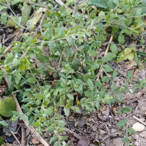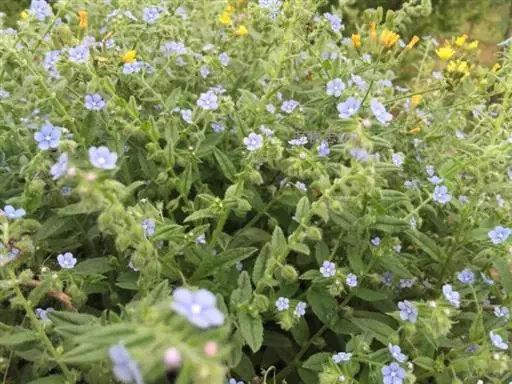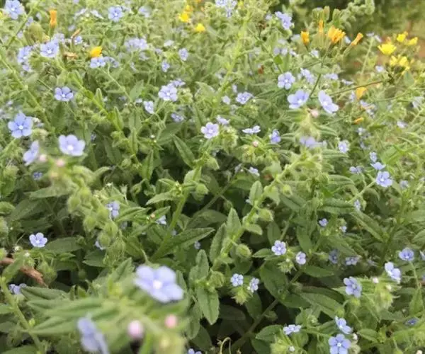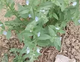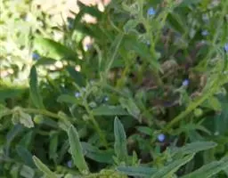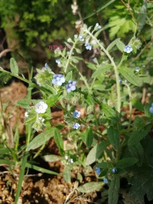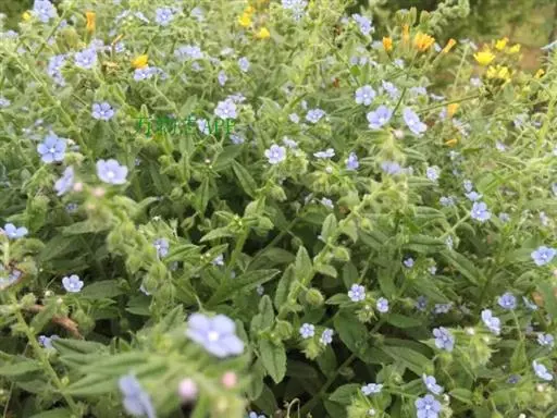 多苞斑种草为一年生或两年生草本。成株 茎直立或上升被开展的糙毛,有分枝。叶卵状披针形或狭椭圆形。镰状聚伞花序狭长;苞片狭卵形,与花梗近等长或稍长;花萼5裂近基部,裂片线装披针形,外被糙毛;花冠淡蓝色,喉部具5个鳞片状附属物,花冠5裂,裂片卵圆形;雄蕊5,内藏;子房4裂,花柱内藏。子实小坚果4,肾形或卵状椭圆形,密生小疣状突起,腹面具纵向椭圆状的凹陷。秋季或春季萌发,花期5-7月,果期6-8月。种子繁殖。