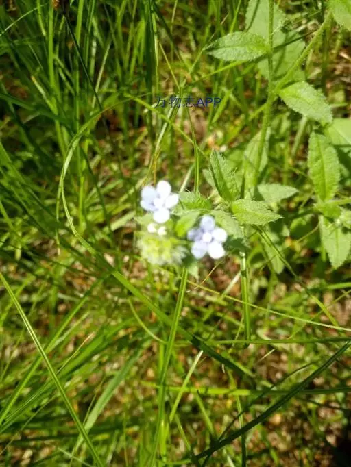 花序生茎顶及腋生枝条顶端,长10-20厘米,花与苞片依次排列,而各偏于一侧;苞片长圆形或卵状披针形,长0.5-1.5厘米,宽0.3-0.5毫米,被硬毛及短伏毛;花梗长2-3毫米,果期不增长或稍增长,下垂;花萼长2.5-3毫米,外面密生硬毛,裂片披针形,裂至基部;花冠蓝色至淡蓝色,长3-4毫米,檐部直径约5毫米,裂片圆形,喉部附属物梯形,高约0.8毫米,先端微凹;花药长圆形,长与附属物略等,花丝极短,着生花冠筒基部以上1毫米处;花柱圆柱形,极短,约为花萼1/3,柱头头状。