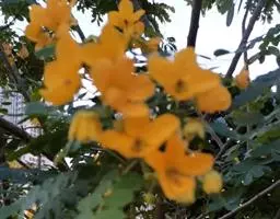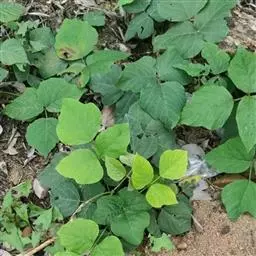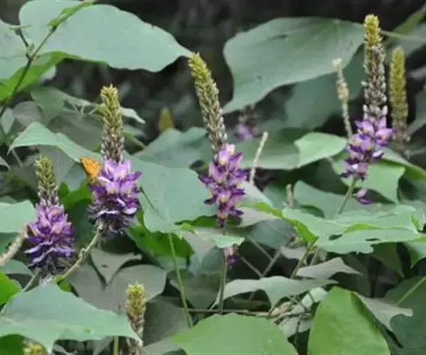 粗壮藤本,长可达8米,全体被黄色长硬毛,茎基部木质,有粗厚的块状根。羽状复叶具3小叶;托叶背着,卵状长圆形,具线条;小托叶线状披针形,与小叶柄等长或较长;小叶三裂,偶尔全缘,顶生小叶宽 卵形或斜卵形,长8-15(-19)厘米,宽5-12(-18)厘米,先端长渐尖,侧生小叶斜卵形,稍小,上面被淡黄色、平伏的蔬柔毛。下面较密;小叶柄 被黄揭色绒毛。荚果长椭圆形,长5-9厘米,宽8-11毫米,扁平,被褐色长硬毛。花期9-10月,果期11-12月。生于山坡草丛中或路旁及较阴湿的地方,或生于海拔1000-3200米的山沟林中。