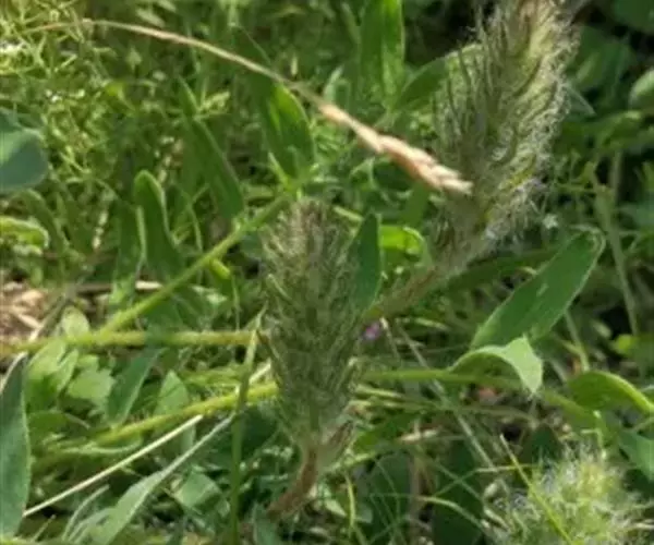 多花组成密长穗形总状花序;花葶粗壮,长于叶,长20-50毫米,密被长硬毛,或至无毛;苞片草质,线形或线状披针形,比花萼长,长7 (13) -8 (-20) 毫米,宽1-3毫米, 先端渐尖,疏被长硬毛;花长15-18毫米;花萼筒形或筒状钟形,长10-13 (-14) 毫米,宽3-4毫米,密被白色长硬毛,萼齿线形,长5-7毫米;花冠蓝紫色,紫红色或黄白色,旗瓣匙形,长约20毫米,宽约6毫米,先端圆形,基部下延成瓣柄,翼瓣长约17毫米,宽约3毫米,瓣片倒卵状长圆形,先端钝,龙骨瓣长约17毫米,瓣片斜长圆形,喙长1-3毫米;子房密被白色柔毛,胚珠20-24。