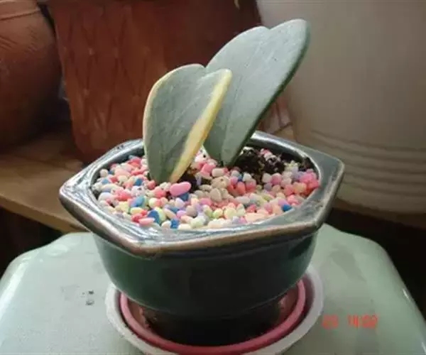 又称腊兰、腊花、腊泉花,肉质茎,叶厚多肉,状如心形。盆栽须放置在间接的光照或半日阴,常向叶面喷水。生长适温为18℃-28℃,越冬温度为5℃左右。