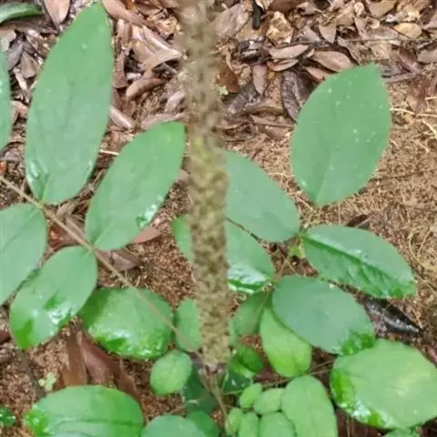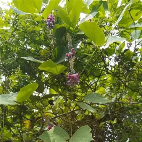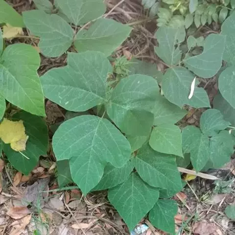 一年生草本,高30-90厘米。茎粗壮,直立,或上部近缠绕状,上部多少具棱,密被褐色长硬毛。叶通常具3小叶;托叶宽卵形,渐尖,长3-7毫米,具脉纹,被黄色柔毛;叶柄长2-20厘米,幼嫩时散生疏柔毛或具棱并被长硬毛;小叶纸质,宽卵形,近圆形或椭圆状披针形,顶生一枚较大,长5-12厘米,宽2.5-8厘米,先端渐尖或近圆形,稀有钝形,具小尖凸,基部宽楔形或圆形,侧生小叶较小,斜卵形,通常两面散生糙毛或下面无毛;侧脉每边5条;小托叶铍针形,长1-2毫米;小叶柄长1.5-4毫米,被黄褐色长硬毛。