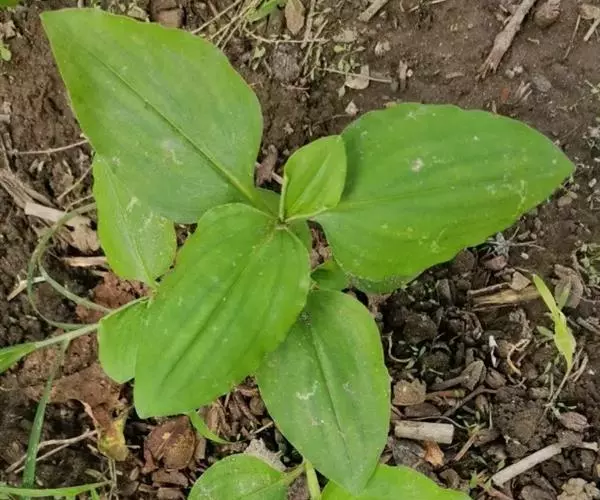 (学名:Commelina bengalensis Linn.):多年生披散草本。茎大部分匍匐,节上生根,上部及分枝上部上升,长可达70厘米,被疏柔毛。叶有明显的叶柄;叶片卵形,近无毛。总苞片漏斗状,与叶对生,常数个集于枝顶,下部边缘合生,长8-12毫米,被疏毛;花序下面一枝具细长梗,具1-3朵不孕的花,伸出佛焰苞,上面一枝有花数朵,结实,不伸出佛焰苞;花瓣蓝色,圆形,长3-5毫米;内面2枚具长爪。蒴果椭圆状,3室,腹面2室每室具两颗种子。种子长近2毫米,多皱并有不规则网纹,黑色。花期夏秋。