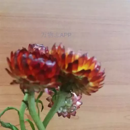 头状花序径2-5厘米,单生于枝端。总苞片外层短,履瓦状排列,内层长,宽披针形,基部厚,顶端渐尖,有光泽,黄色或白、红、紫色。小花多数;冠毛有近羽状糙毛。瘦果无毛。