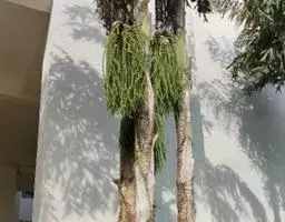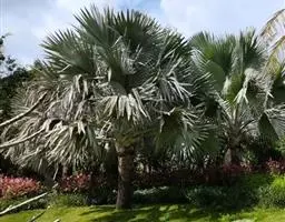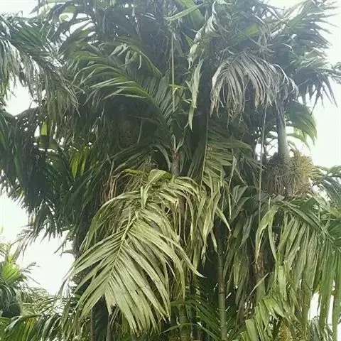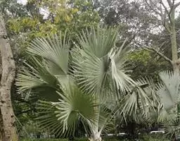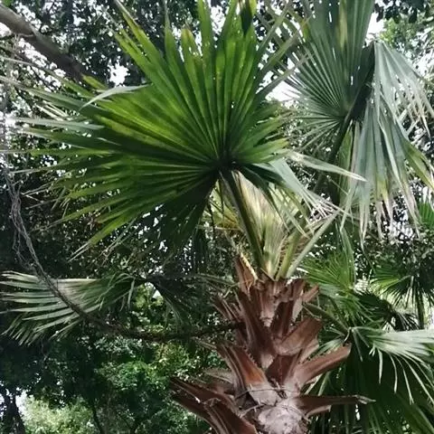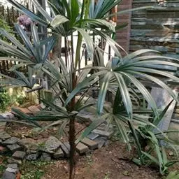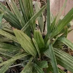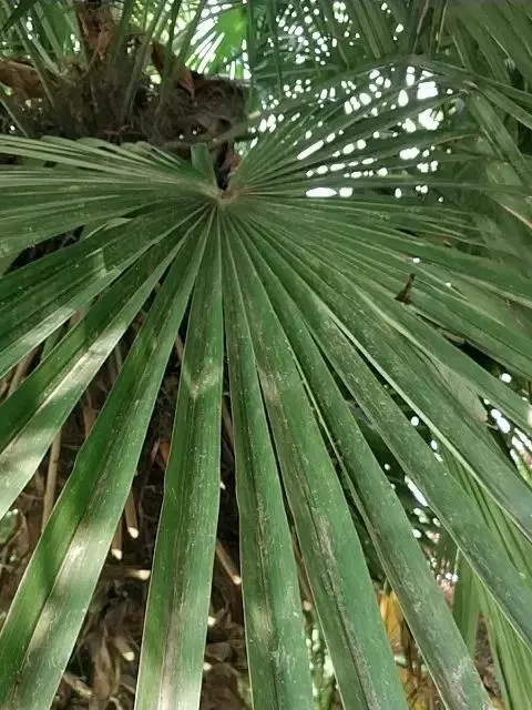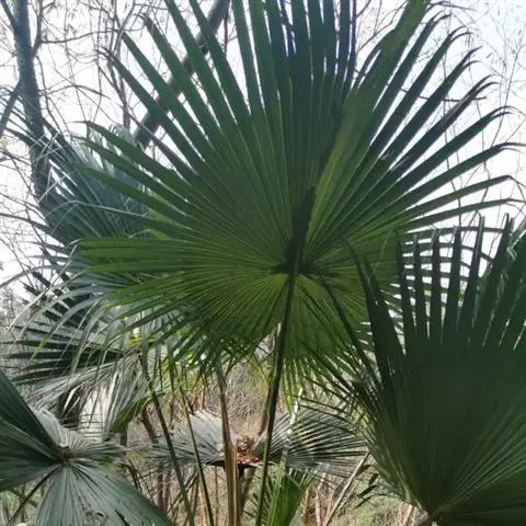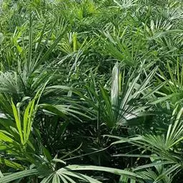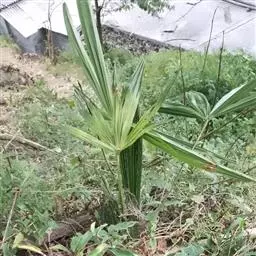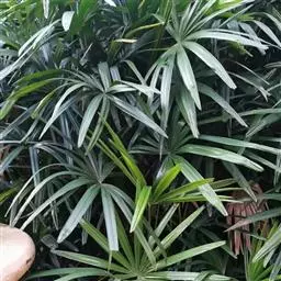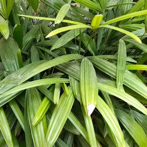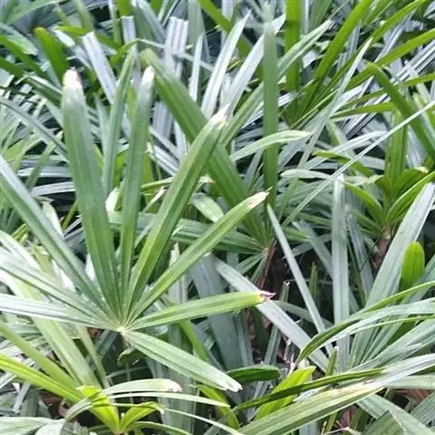 细叶棕竹,灌木,茎细如竹,多数聚生,有网状叶鞘。叶半圆形,掌状深裂,裂片狭长,阔线形,软垂,裂片7…