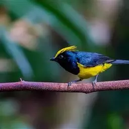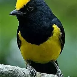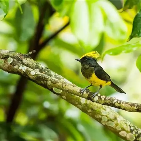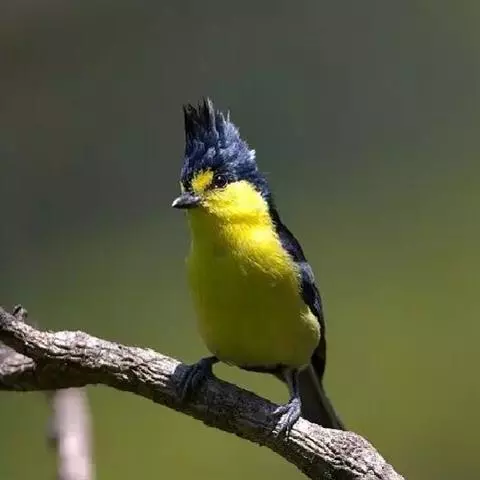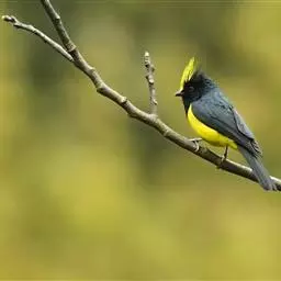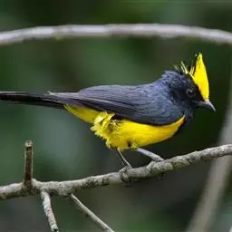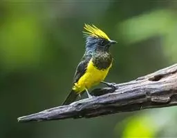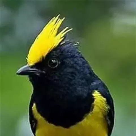 冕雀(Melanochlora sultanea)体极大(20厘米),具蓬松的 冕雀 黄色长型冠羽。头部黑色、下体黄,上体黑、翅黑。雌鸟头部色淡为深橄榄色,上体沾橄榄色,翅黑。