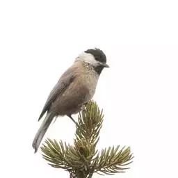 褐头山雀:共有14个亚种,是一种小型的山雀。头顶及颏褐黑,上体褐灰,颊白,颏和喉黑色,下体近白,…