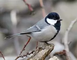 煤山雀(Parus ater )体小(11厘米),颈背部有白斑。 头顶 煤山雀 黑、喉及上胸黑,翼具两道白色翼斑。有的亚种具尖状的黑色冠羽。与褐头山雀、沼泽山雀易混,区别在有两道翼斑,颈背有白斑及喉部黑色区块大。