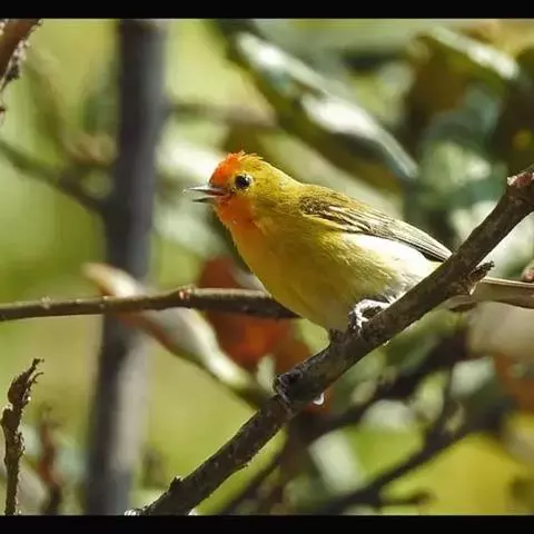 黄眉林雀(Sylviparus modestus)体甚小(10厘米),外形似柳莺 黄眉林雀 或啄花鸟。体羽大致橄榄色,羽冠短,狭窄的黄色眼圈,浅黄色短眉纹,示警时或兴奋时冠羽耸立、浅色眉纹显出;腿甚显粗壮。具淡色羽缘,形成翼带。腰与上体颜色一致,没有明显腰色。与火冠雀易混,区别在具冠羽而腰部无浅色反差。生于海拔500-3000米左右的山地,冬季可见于平原地区。国内分布于福建、四川、云南、贵州、西藏等地,国外分布于尼泊尔、锡金、不丹、印度、孟加拉、缅甸、越南等地。