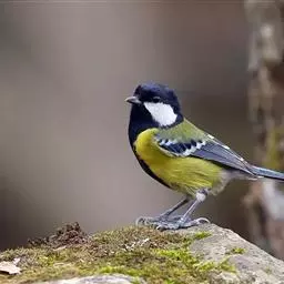 山雀 山雀科(Paridae)小巧玲珑的鸣禽(又称鼠山雀),65种。产于欧亚大陆、北美与非洲。栖息于林地与花园,主要以昆虫为食。长7—20厘米,羽毛柔软,一般为灰色或黑色,常带有蓝黄斑纹。 为农林益鸟。