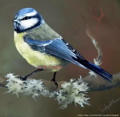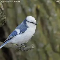 灰蓝山雀(Parus cyanus)体小(13厘米),嘴短,头白沾灰 灰蓝山雀 ,具蓝灰领环并与贯眼纹相连。下体白,上体蓝灰,翅蓝具白色粗翼斑。腹部有黑块。
