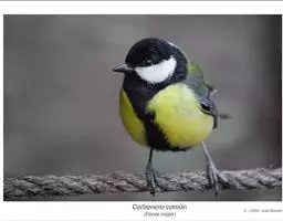 大山雀(Parus major),俗名仔仔黑、白脸山雀、仔伯、家qiao。为山 大山雀 雀科中体型最大的鸟类,背羽绿灰色,头黑且两侧白色,形成明显的白斑状,故名白脸山雀。腹面白色,正中则纵贯以黑色宽纹,加以前胸黑缘,故形成丁形的黑襟。大山雀在国内分布广泛而且数量较大,多栖于山区针叶林、针阔混交林或阔叶林间以及丘陵果园及耕作区等地,在庭园林间亦能见到,为留鸟。雏鸟离巢后常结成小群活动,有时亦与其他山雀混成数十只大群,秋冬季常迁飞到平原地带林区。常栖于树枝上发出“仔黑,仔黑,仔黑”或“仔仔黑,仔仔黑,仔仔黑黑黑”。