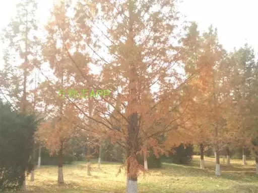 水杉(学名:Metasequoia glyptostroboides Hu & W. C. Cheng):裸子植物杉科。落叶乔木,小枝对生,下垂。叶线形,交互对生,假二列成羽状复叶状,长1-1.7厘米,下面两侧有4-8条气孔线。雌雄同株。球果下垂,近球形,微具4棱,长1.8-2.5厘米,有长柄;种鳞木质,盾形,每种鳞具5~9种子,种子扁平,周围具窄翅。