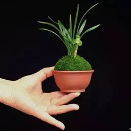 方法一 准备好兰盆及植料后,将兰株倒拿(根在上,叶在下)放于水龙头下以慢水冲洗,但水压切忌过强,以免伤兰根及叶子。用拇指和食指抓住兰头,小指抵住盆缘,用竹筷将根固定,当放入盆内时,尽量不要让根接触到盆壁。将豆粒大的混合石砾倒入盆底至三分之一处。然后倒入中粒植料至五分之四处,填实和尽量不要留下空间。将竹筷拔出,并摇实盆中植料。填实植料后,再用大粒植料埴入至距盆缘1.5厘米处。最后再倒入豆粒大植料,以将假鳞茎全部埋入土中为度,然后充分摇实。用压土工具轻压植料,并将表面弄平。种植完毕后,植料在盆中以中央稍高为好。