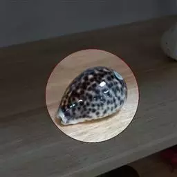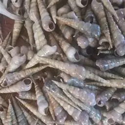 贝壳表面光亮,壳表为乳白色至黄褐色,并具有半月形或三角形的深褐色斑纹和新月形斑纹。壳口卵圆形,内面橘红色,具瓷光。外唇齿间有白色沟槽。轴齿白色,齿间为深褐色。厣角质,生长纹清细,核位于中央。 足部异常发达,肉可供食用。