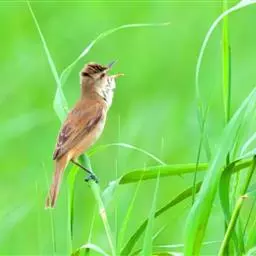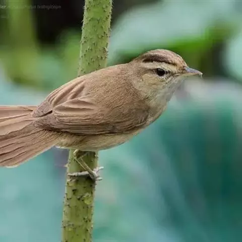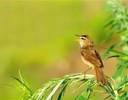 大苇莺:属小型鸟类,雌雄两性羽色相似。眉纹淡棕黄色;眼褐色;翅褐色具淡棕色的边缘;尾羽亦褐色,…