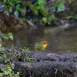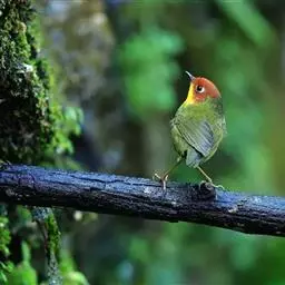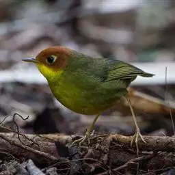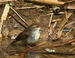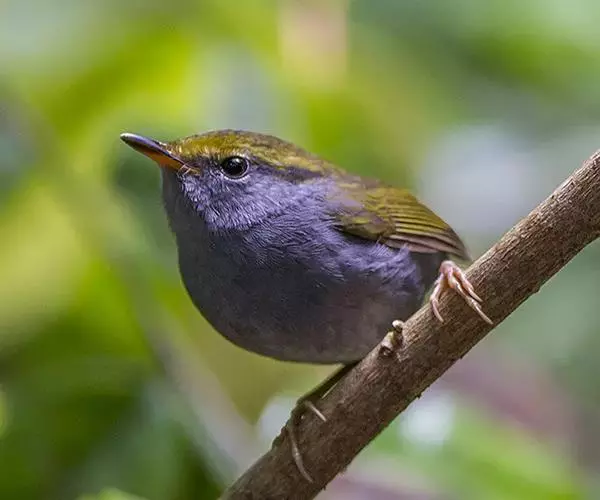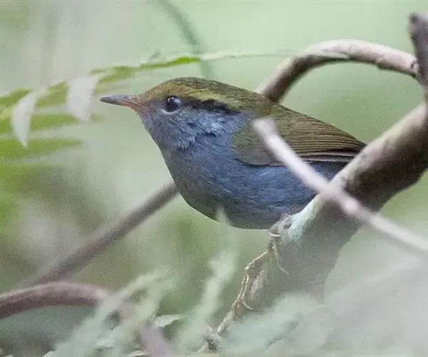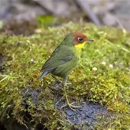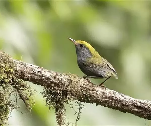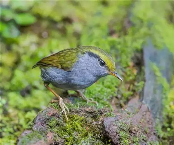 金冠地莺(学名:Tesia olivea):形态与灰腹地莺相似,上体橄榄绿,前额至头顶渲染亮金黄色;下体几乎纯暗石板灰色,下嘴基部橙红色或橙黄色。虹膜褐色;上嘴角褐色,下嘴基部橙红色或深橙黄色直至嘴尖;跗跖和趾褐色,爪褐色。