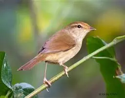 斑胸短翅莺:小型鸟类,体长11-13厘米。上体暗赭褐色,眉纹灰白;下体白色,下喉至上胸具灰褐点斑,…