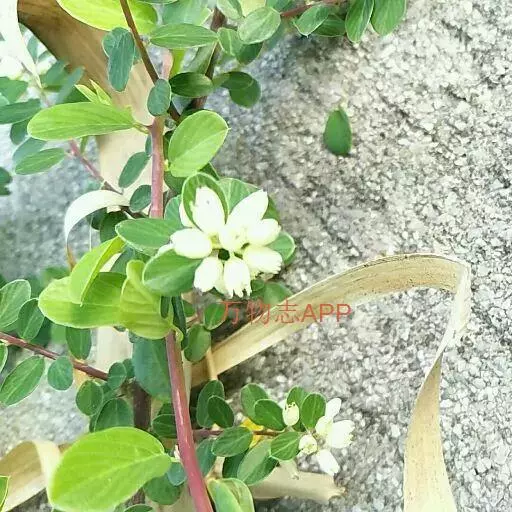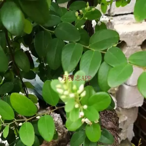 藤状或矮灌木,高达21米;小枝圆柱状,黄绿色,被密短柔毛。叶纸质,矩圆形或椭圆形,长5-20毫米,宽4-12毫米,顶端圆形或钝,具小尖头,基部圆形,上面绿色,下面浅绿色,两面无毛,侧脉每边4-5,稀6条;叶柄短,长不超过2毫米,被短柔毛;托叶披针形,稍长于叶柄,宿存。花白色,长4-5毫米,无毛,花梗长2.5-4毫米,无毛,通常数个至10余个密集成顶生聚伞总状花序,或有时1-5个簇生于花序下部叶腋,近无总花梗;花芽卵圆形,长过于宽,顶端钝;萼片条形或狭披针状条形,顶端尖,萼筒短,盘状;花瓣匙形,顶端钝。核果圆柱形,顶端钝,长5-6毫米,直径约3毫米,成熟时黑色或紫黑色,基部有宿存的花盘和萼筒;果梗长4.5-5毫米,被短柔毛。花期7-10月,果期11月。