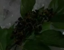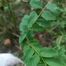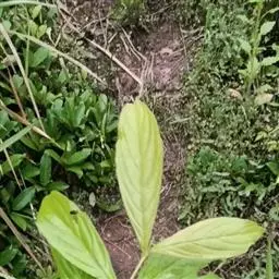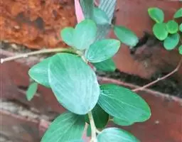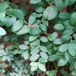 (2)光枝勾儿茶茎呈圆柱形,直径可达1.5cm。表面棕褐色至暗紫色,外被蜡质;质坚硬,难折断,断面不整齐,皮部薄,木部浅黄色,髓明显。叶互生,有短柄,叶片卵圆形,长2-4cm,宽1-2cm,先端渐尖或钝圆,项处有芒尖,全缘;上表面灰绿色,下表面黄绿色,羽状侧脉7-9对;叶近革质。气微、味微苦涩。
