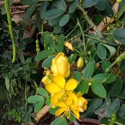 双荚决明 Roxb.)是豆科、决明属直立灌木,多分枝,无毛。叶长7-12厘米,有小叶3-4对,…