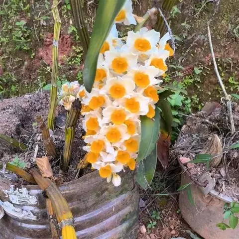 聚石斛是兰科石斛属植物。茎假鳞茎状,密集或丛生,多少两侧压扁状,纺锤形或卵状长圆形,长1-5厘米,…