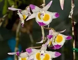 玫瑰石斛是兰科石斛属的多年生附生草本植物。茎斜下或下垂,青绿色,圆柱形,…