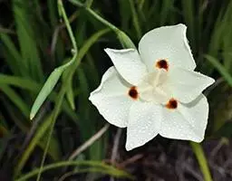 玉蝉花是多年生草本植物,植株基部围有叶鞘残留的纤维。根状茎粗壮,斜伸,外包有棕褐色叶鞘残留的纤维;须根绳索状,灰白色,有皱缩的横纹。叶条形,长30-80厘米,宽0.5-1.2厘米,顶端渐尖或长渐尖,基部鞘状,两面中脉明显。